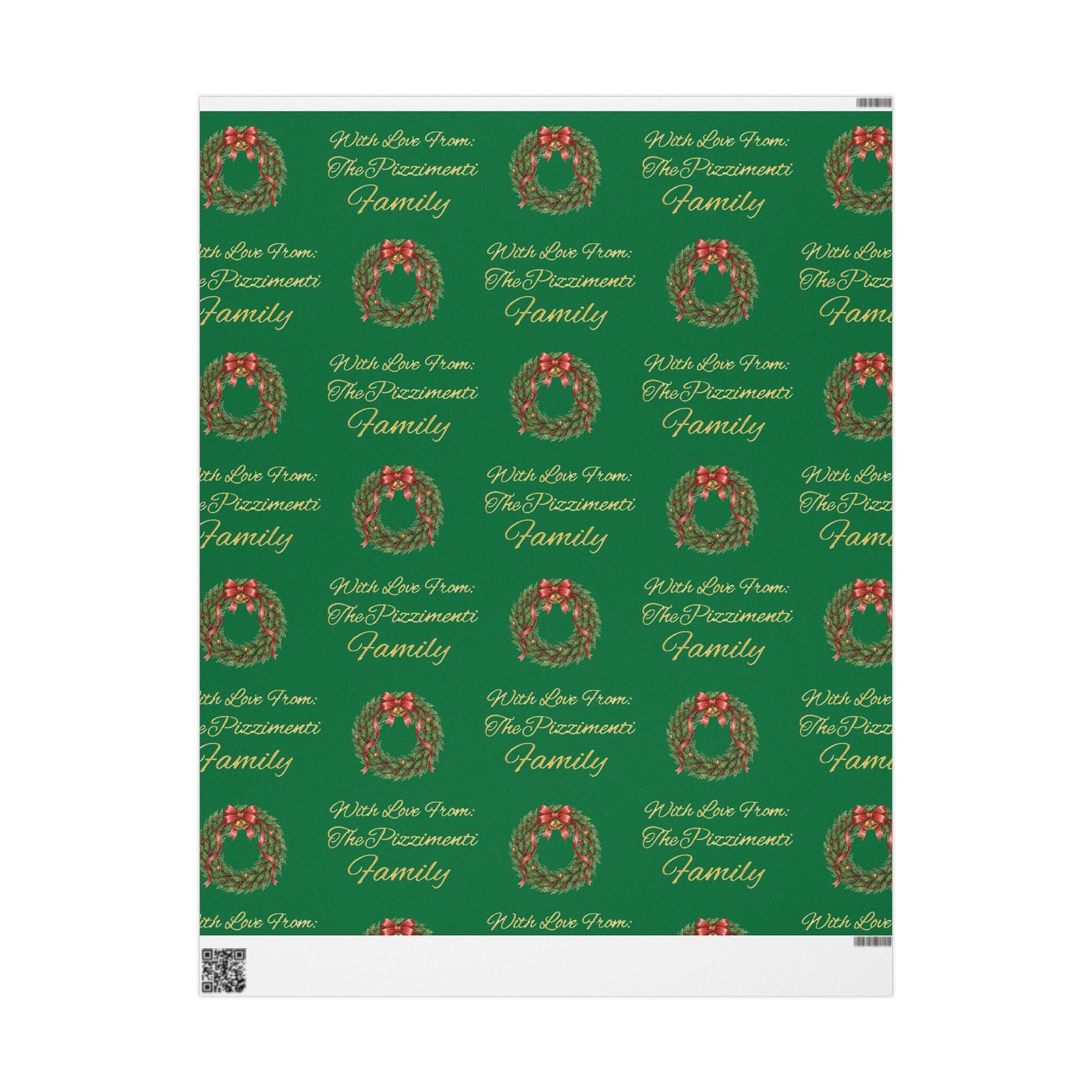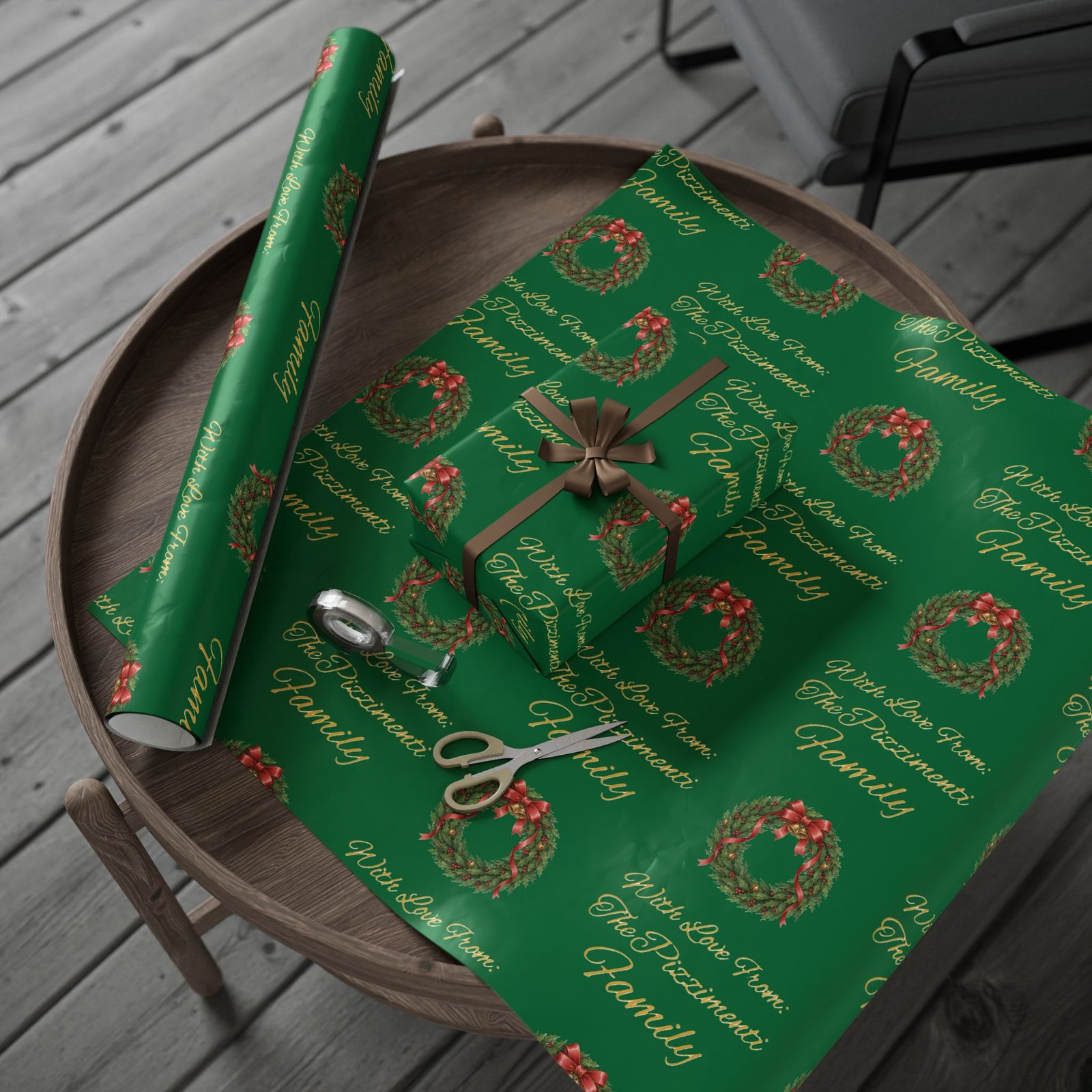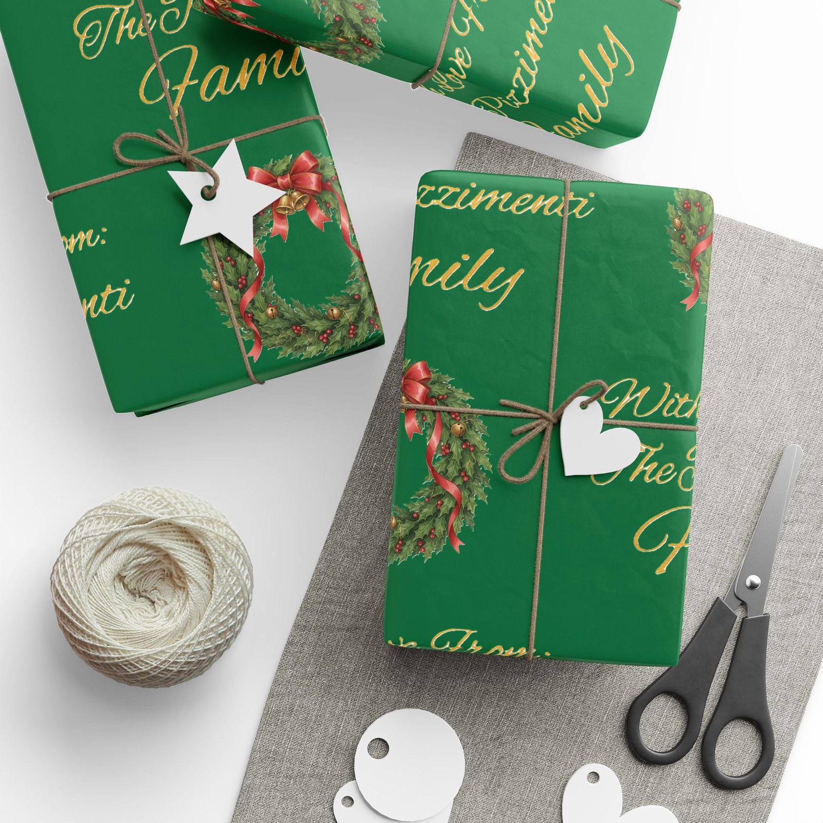 Festive Wreaths with Personalized Family Name Wrapping Paper
