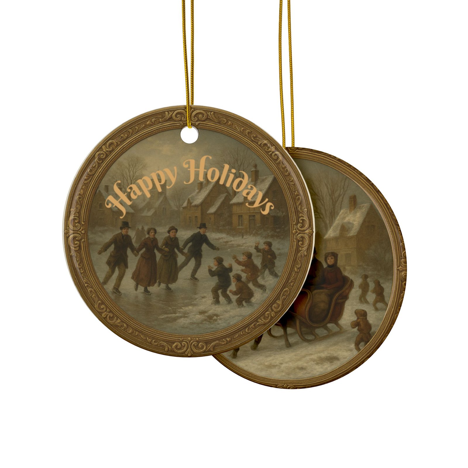 Vintage Holiday Ceramic Ornaments – Double-Sided